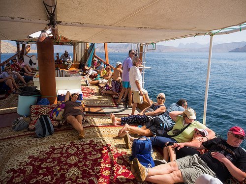 La verdadera estrella de esta escala son los cruceros en Dhows por el fiordo de Musandam,dicen que es espectacular y sobre todo el avistamiento de delfines muy típico de esta zona.