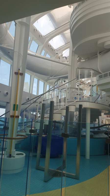 Las dos primeras fotos son de la subida a los toboganes y a la parte de las atracciones acuáticas. Este barco tiene dos toboganes desde la última planta hasta cuatro plantas más bajas. También una piscina de roscos y otras de corrientes de agua. Esta muy preparado sobre todo para los que tienen niños pequeños.
