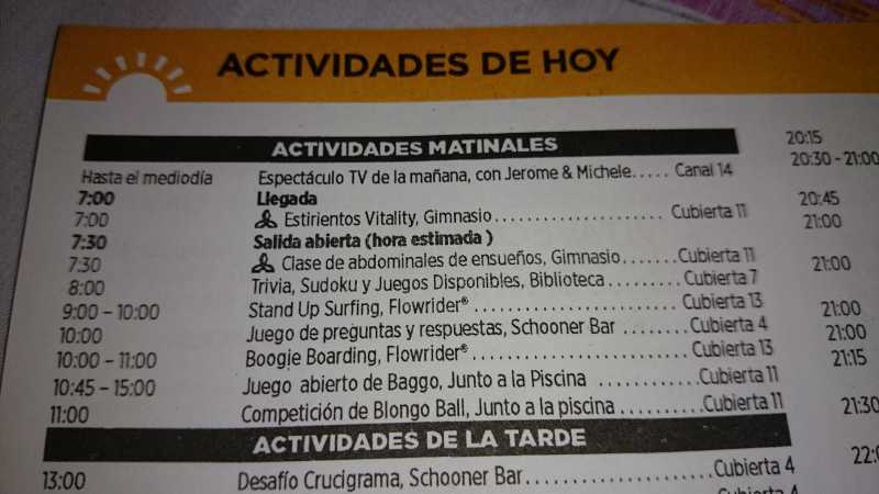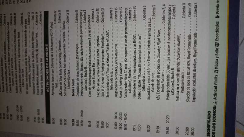 Principalmente para saber a que hora esta abierto el flowrider, por lo menos el dia de Roma y de La Spezia, porque no queremos bajar a tierra y saber que podemos hacer en el barco. GraciasEidane escribió: Hola, que quieres saber de los diarios de abordo??