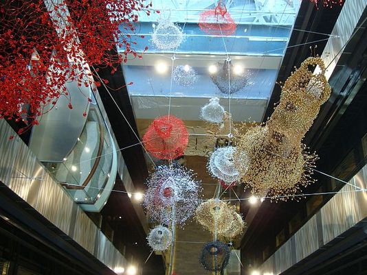 Este año he comenzado con mucha curiosidad artística y después de ver los vestidos que flotan en el atrio de popa me he ido a ver que encontraremos en el de proa..........