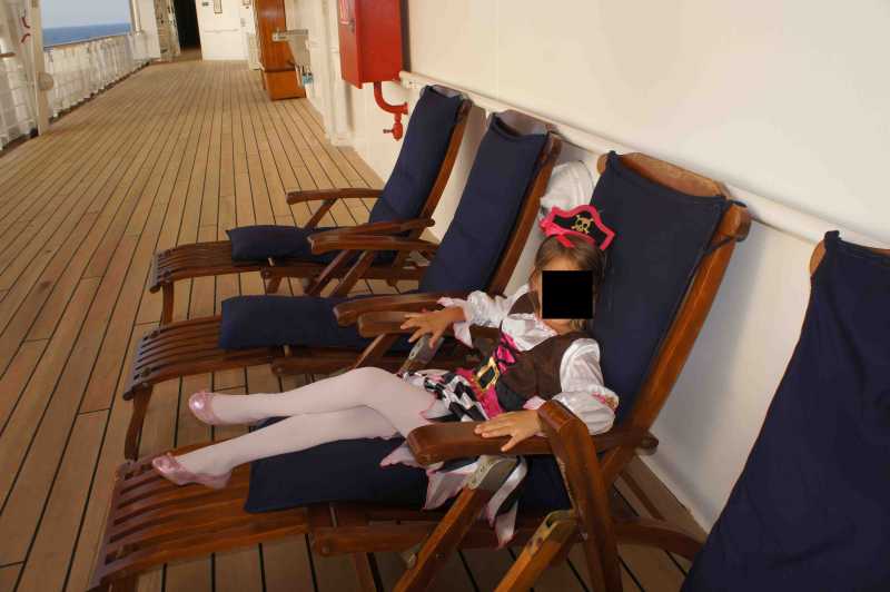 Pero no pasa nada, a quien madruga Dios le ayuda. Disfrutamos del desayuno en la terraza descubierta del bufé, mirando la estela que dejaba el barco al navegar. Las niñas estaban emocionadas y eso que ya tuvieron ocasión de conocer princesas cuando estuvimos en Eurodisney hace dos años. Es que en serio se creen que son las princesas de verdad. ¡Cuánta inocencia!