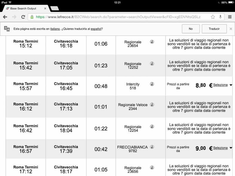 La web de Trenitalia por defecto comenta los Freccia, por eso el primer horario es a las once de la mañana.