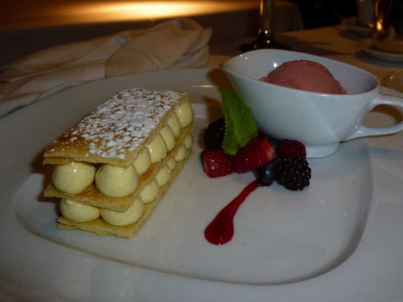 Nosotros lo habiamos reservado un par de meses antes por Internet, a un precio nomina de 39 dolares por persona, pero lo cierto es que la inversión merece la pena, a tenor de los platos que comimos, entre ellos el famoso solomillo dukan que aparece en el video y la ensalada de langosta que se aprecia en la foto que colgó ayer Fermin.