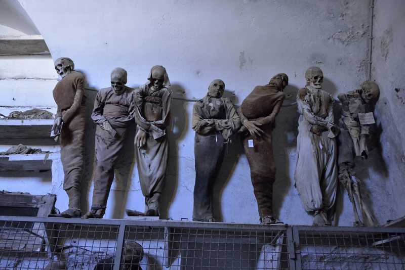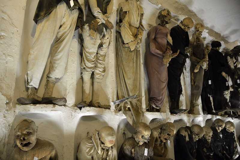 Catacumbas de los Capuchinos. Ni da miedo ni impresión ni nada parecido. Fuimos con niños y ellos no tuvieron reparo alguno. No se puede hacer fotos dentro de las Catacumbas, pero yo disimuladamente hice algunas hasta que me "regañaron". Pero, como luego, puedes comprar todas las fotos que quieras de los muertos, me pareció que el sentido de respeto con el que quieren adornar el lugar se queda eclipsado por el negocio de siempre.