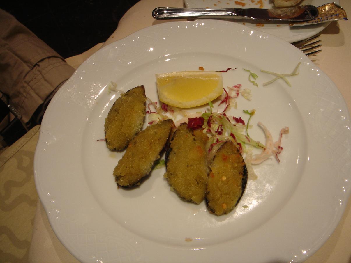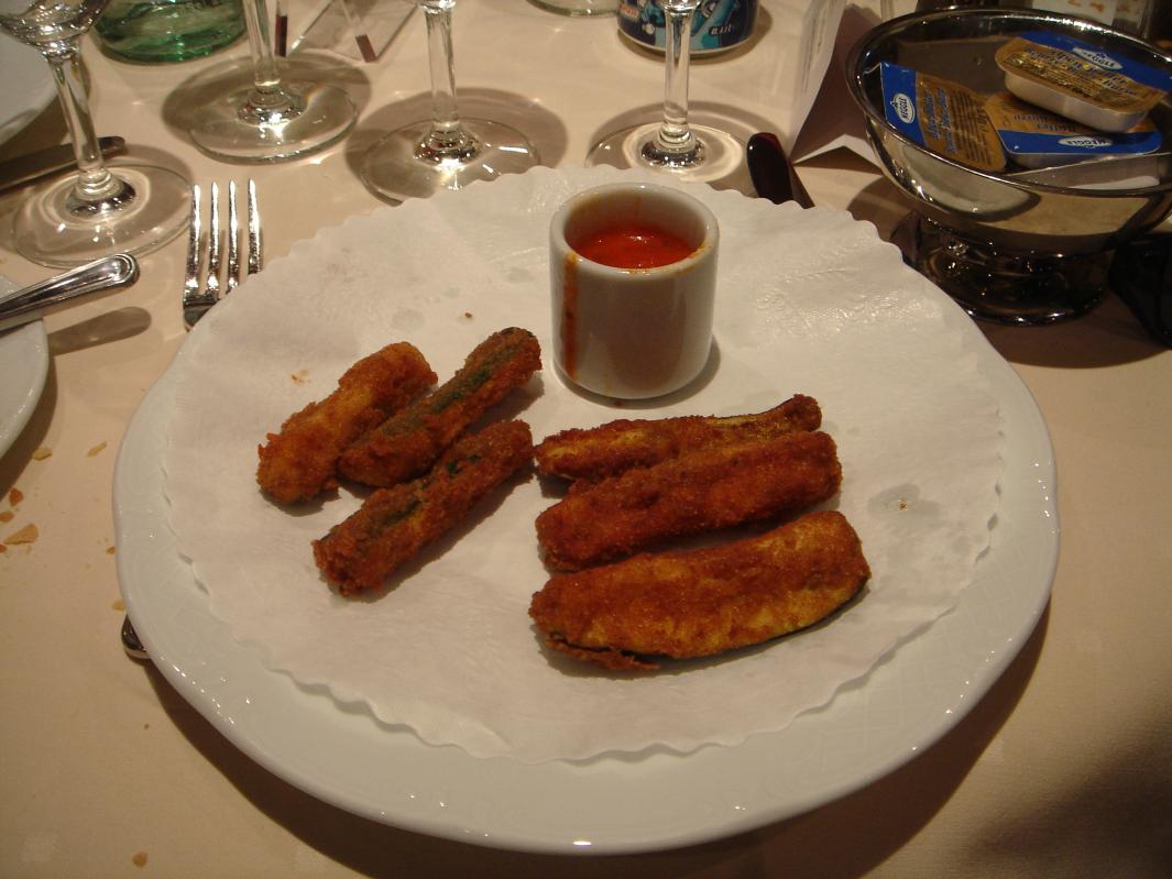 En los platos de pasta como por ejemplo el rissoto o los macarrones estos gordos, yo los he pedido con pescado y ni lo he olido, mi mujer pido un dia un consome y era agua de color marron y ni si quiera turbiaba un poco.Los mejillones que me pusieron deberian de estar prohibido cojerlos de pequeños que eran.Otro dia pedi como segundo plato berenjenas y calabacines y me pusieron 3 trocitos como el dedo gordo de cada con una taza de tomate sucia, y debajo de la comida una oblea para absorver la grasa.