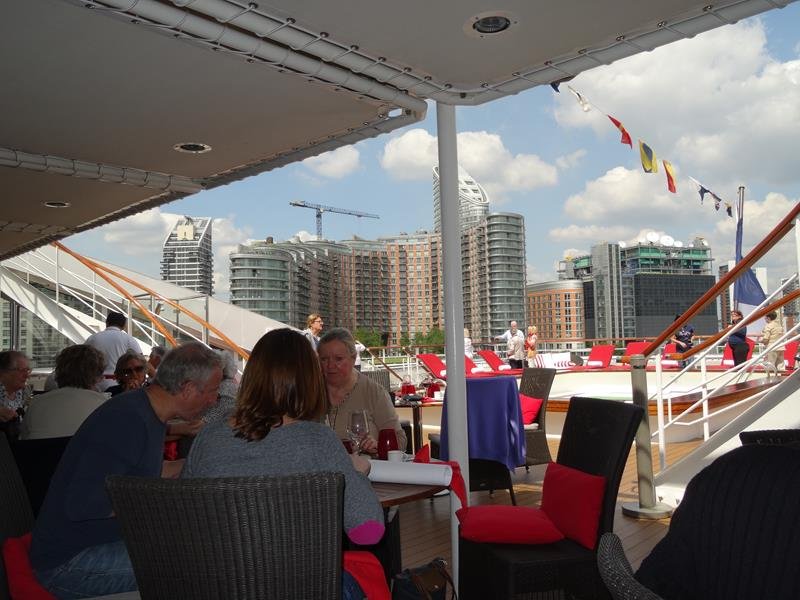 Saludos, la bocina sonando. Sin duda eramos una atracción local. Nos colocamos la lado del HMS Belfast, barco museo que jugó un papel esencial en la defensa del País en la Segunda Guerra Mundial, y un icono importante en el turismo militar del Imperial War Museum.
