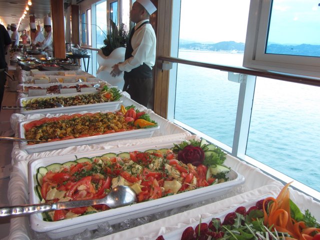 El Director de Hotel sirviendo como cualquier trabajador mas, estos detalles son muy notables en Azamara y con las vistas a Portovenere y con el tiempo tan bueno esas noche fue todo un éxito para Azamara esta barbacoa bufete.
