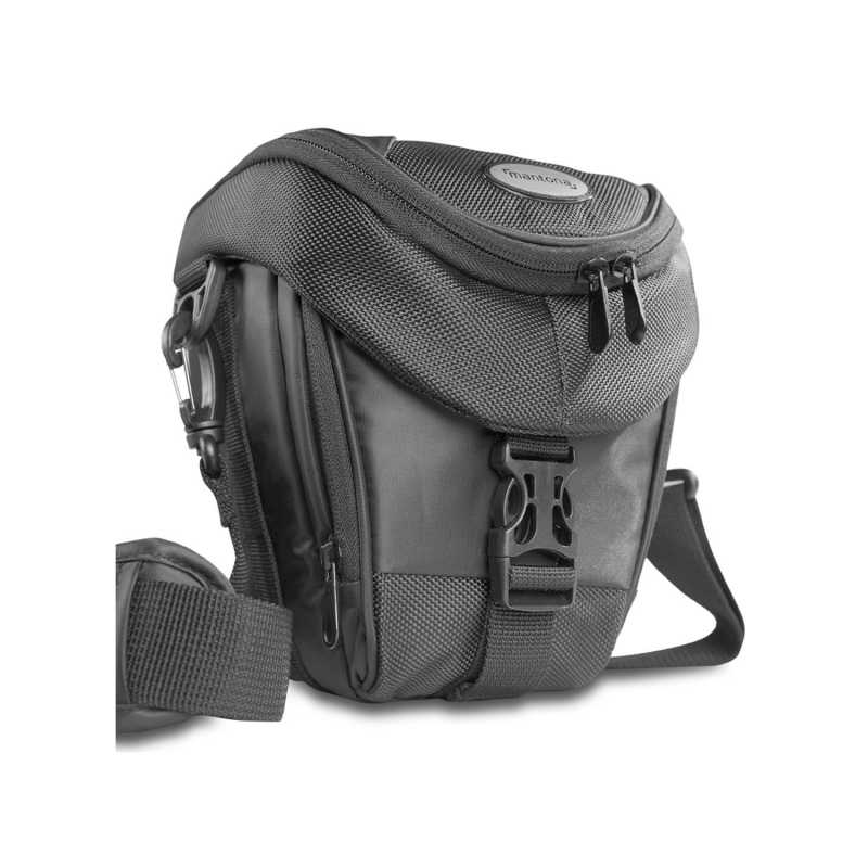 Yo creo que para una cámara buena y llevar el objetivo puesto, la funda -que también te oculta la correa de la cámara- sería suficiente.