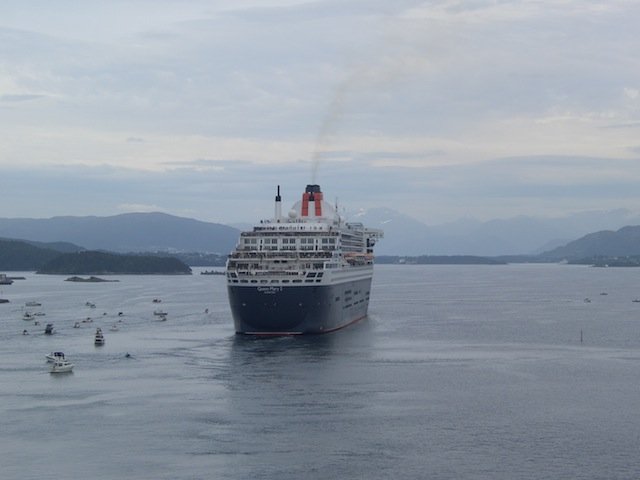 Queen Mary 2 saliendo de Alesund