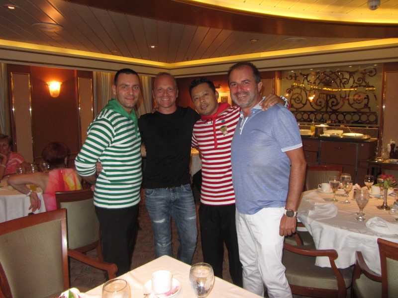 De Princess me quedo con el buen servicio de los asistentes de mesa de cada noche que los dos eran lo mejor que me he encontrado, el camarero era de Mexico y su ayudante de Serbia y me quede sorprendido pues el día que nos despedimos el ayudante que era una persona encantadora se le saltaron las lagrimas y ambos diciendo que para ellos había sido un honor de tenernos en sus mesas asignadas y que éramos geniales