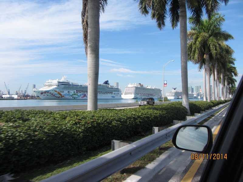 Una foto muy tipica que vemos en películas del puerto de Miami ;) . 5 cruceros ese día.